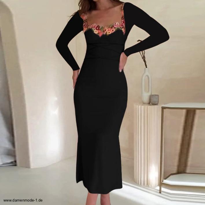 Elegantes Langarm Bleistift Kleid in Schwarz mit Blumenspitze