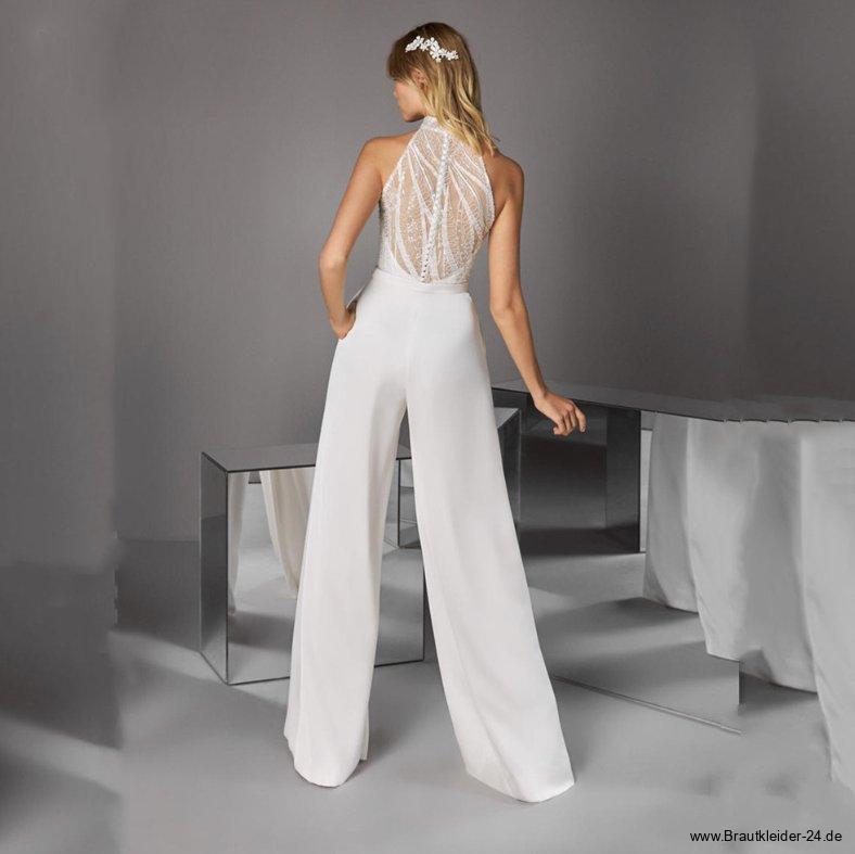 A Linie Neckholder Träger Standesamt Overall Einteiler in Weiß für die Braut
