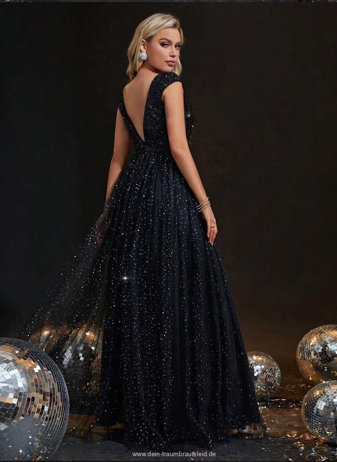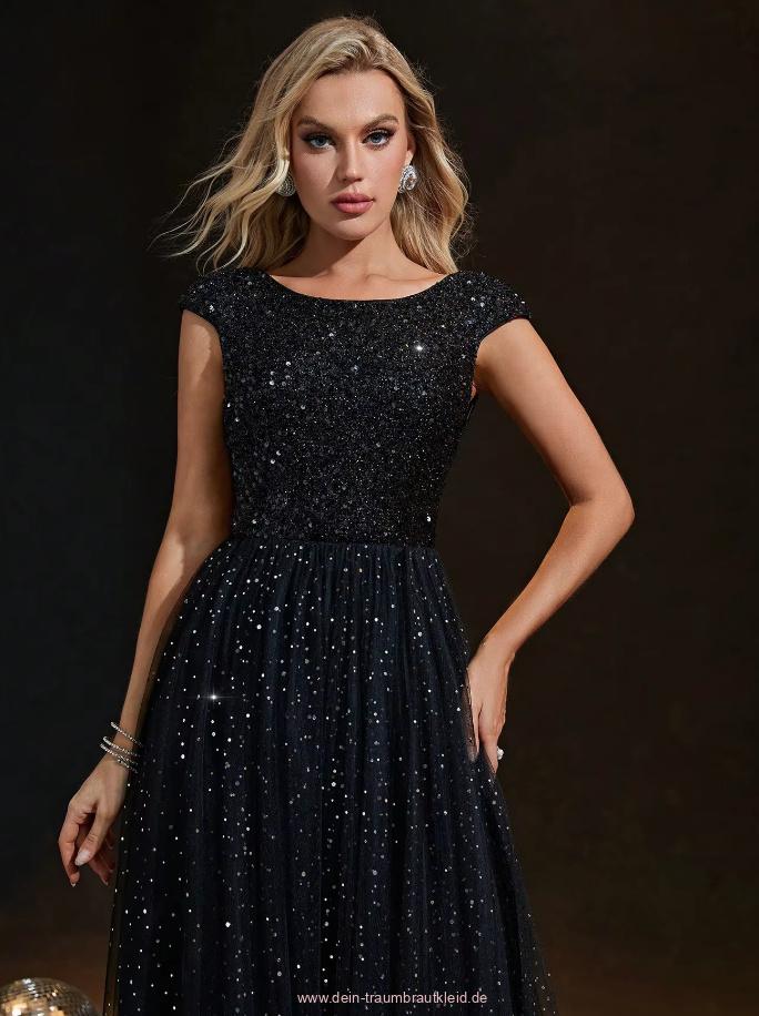 A Linie Glitzer Abendkleid für Hochzeitsgäste in Schwarz Ärmellos