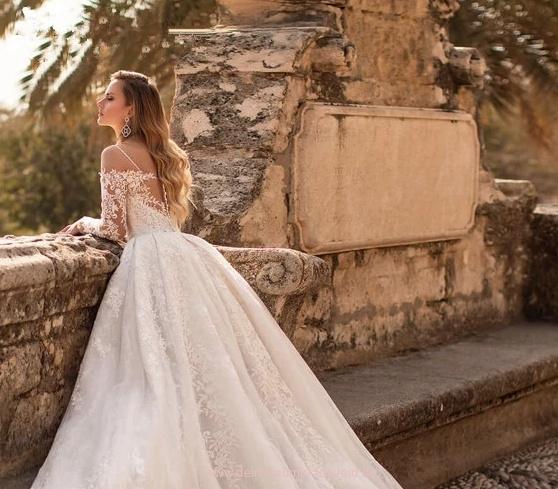 Spaghetti strap A line boho wedding dress Alisia with lace and sweetheart neckline