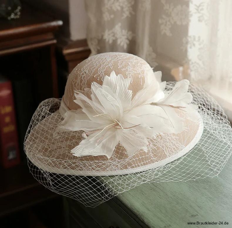 Brauthut Kelly in Champagne mit Schleier und Blume