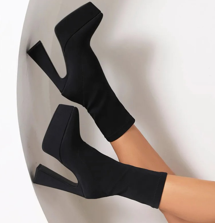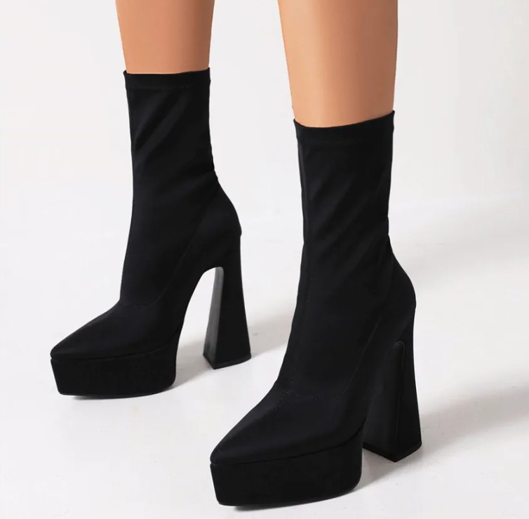 Stretch Satin Plateau Damen Stiefeletten in Schwarz bis Gr 43