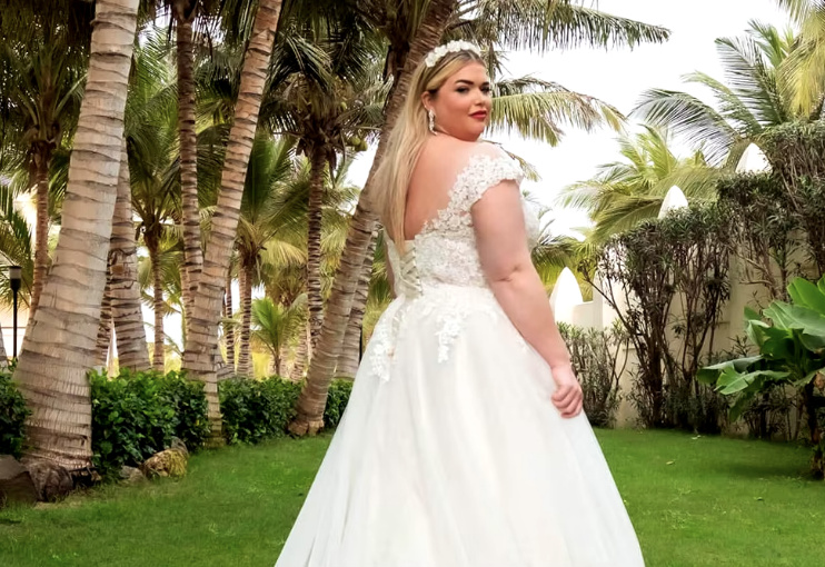 A-line short-sleeved wedding dress Christiane with appliqués floor-length