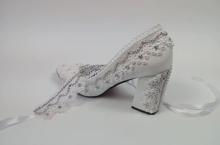 Block heel wedding shoes bridal shoes dolphins in white with lace and pearls