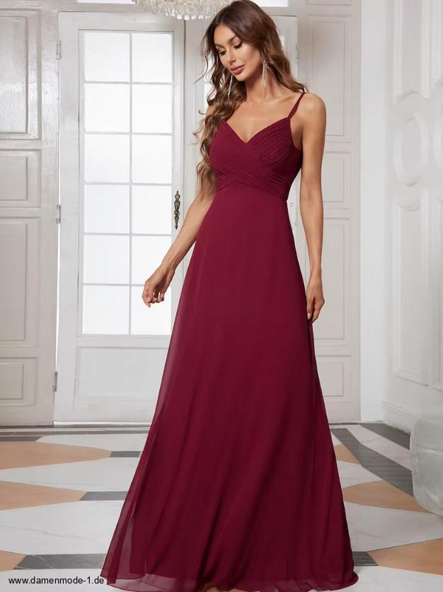 Spaghettiträger Empire Maxikleid Elegant Lang in Dunkelrot
