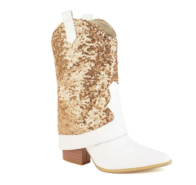 Bridal shoes glitter western cowboy boots Irmtraud with gold sequins