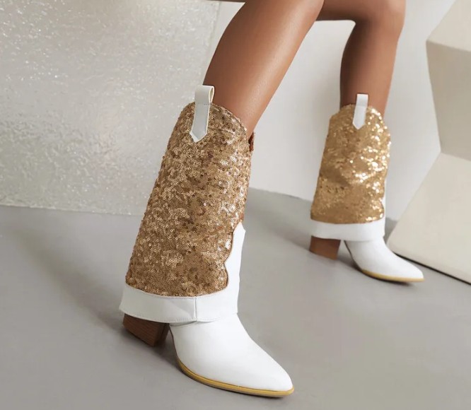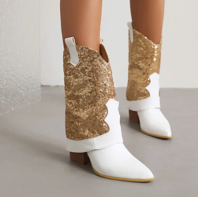 Brautschuhe Glitzer Western Cowboy Stiefel Irmtraud mit Gold Pailletten