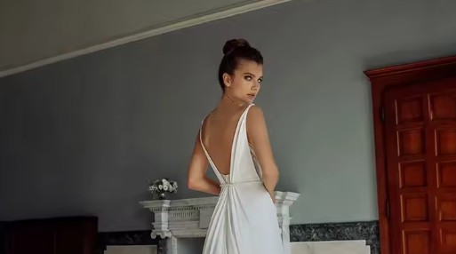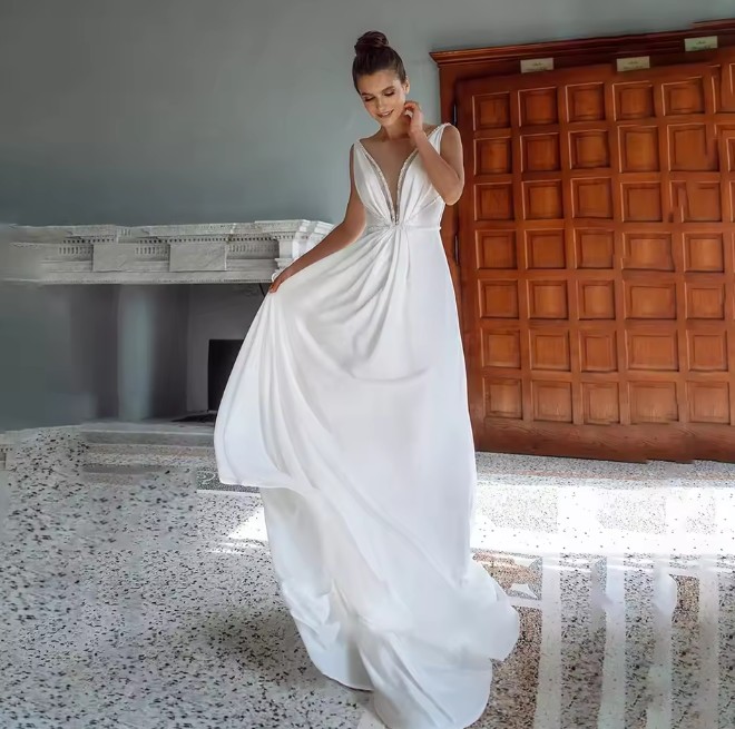 Empire wedding dress Dyrken sleeveless with V neck and sequins