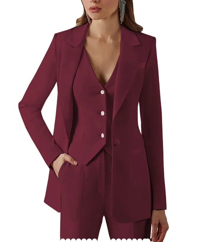 Women’s trouser suit Elonie three-piece with vest in wine red
