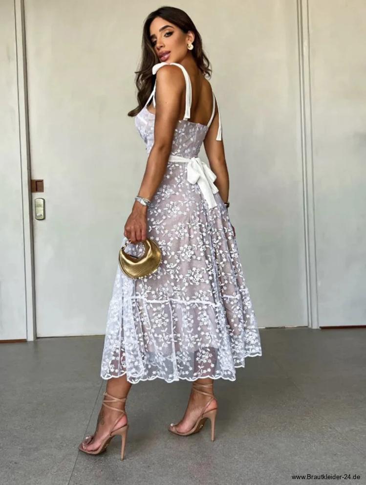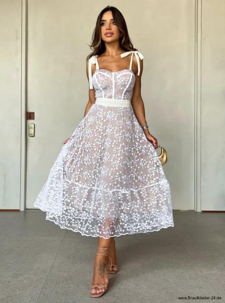 Jacquard Standesamtkleid Lilith aus Spitze Wadenlang