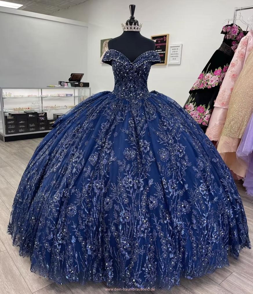 Sparkly Quinceanera Ball Linie Brautkleid Charleen Schulterfrei in Navyblau