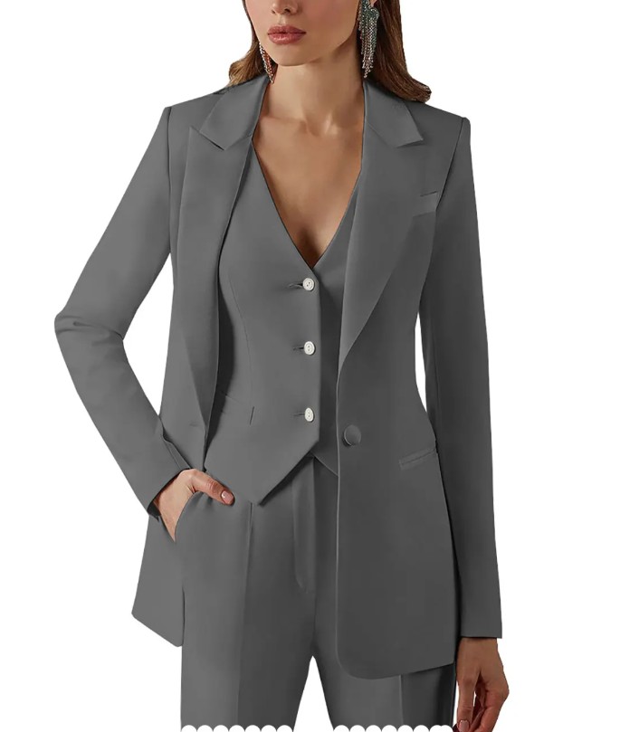 Women’s trouser suit Elonie three-piece with vest in dark grey