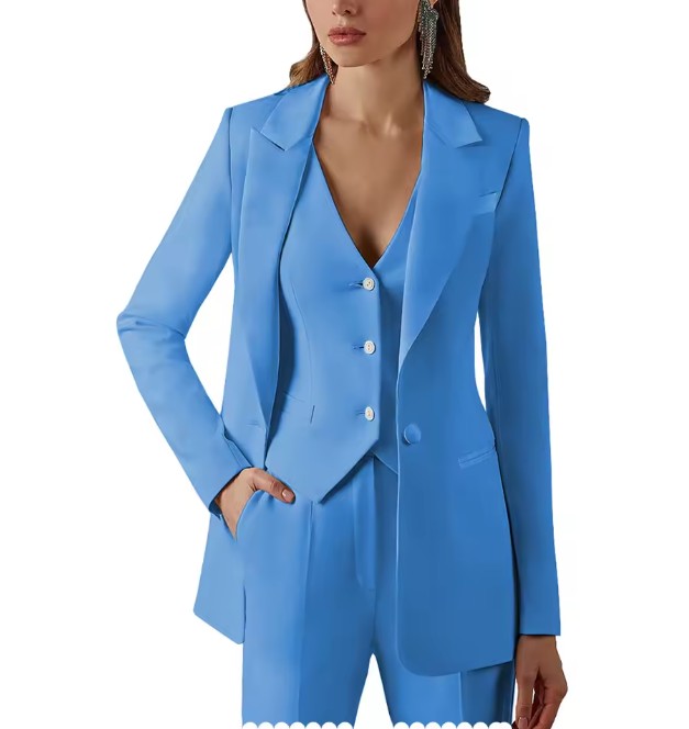 Women’s trouser suit Elonie three-piece with vest in light blue