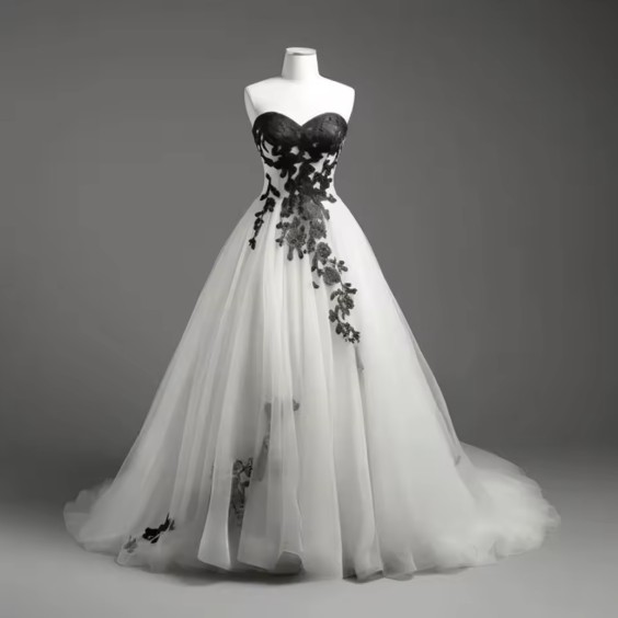 Off-the-shoulder A-line tulle wedding dress Iordana with black lace
