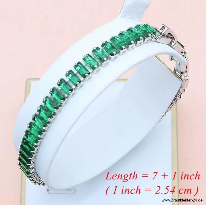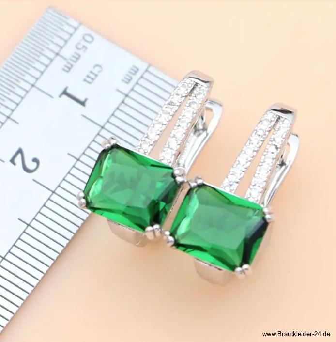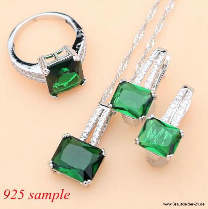 Vintage Style Brautschmuck Set Lovina 925 Sterling Silber Halskette Armband Ohrringe Ring Grün