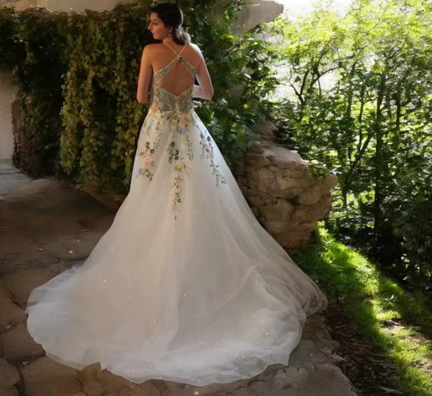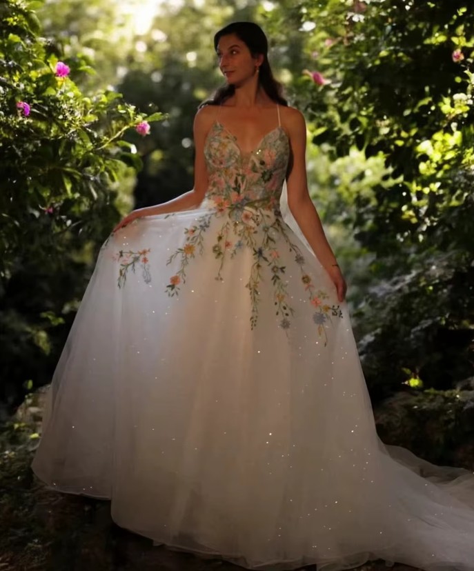 A-line tulle wedding dress Dion with colorful flowers