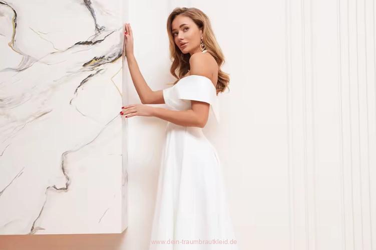 Schulterfreies A Linie Standesamtkleid Ermelina Wadenlang in Weiß