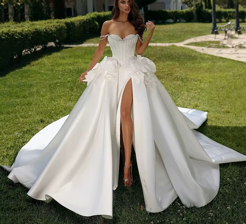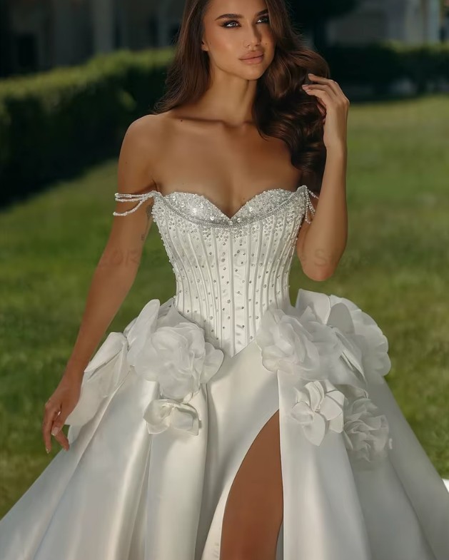 Schulterfreies Prinzessin Brautkleid Ines mit Sexy Cut Out und Perlen Applikationen