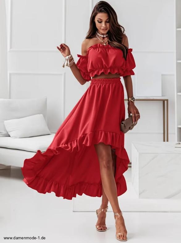Bohostyle Sommer Zweiteiler Bernadette Rock mit Croptop in Rot