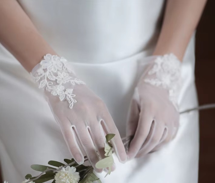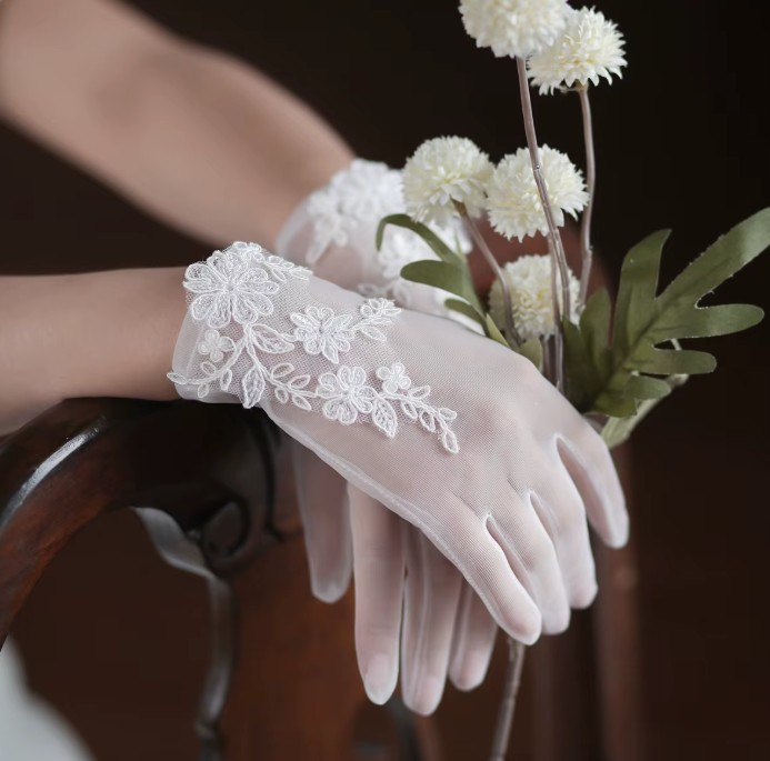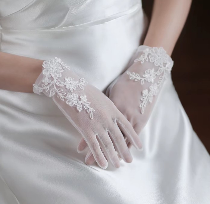 Kurze Brauthandschuhe Eleonore mit Spitze