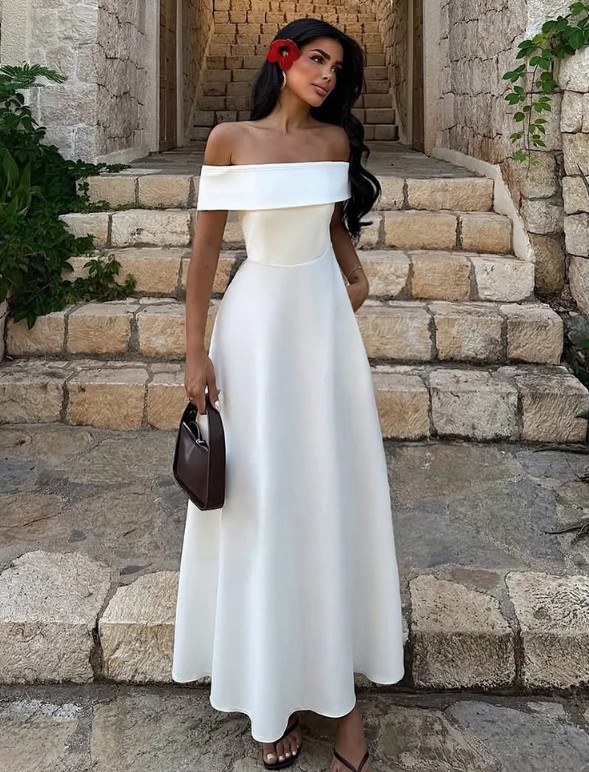 Schulterfreies A Linie Standesamtkleid Ella Schlicht