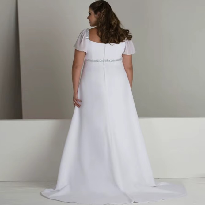 Clean Chic Empire Wedding Dress Hanke with Chiffon Sleeves
