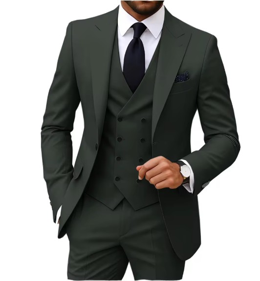 Eleganter Herrenanzug Dreiteilig in Dunkelgrün