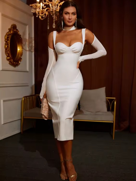 Bleistift Standesamtkleid Isamara mit Herz Dekoltee Wadenlang