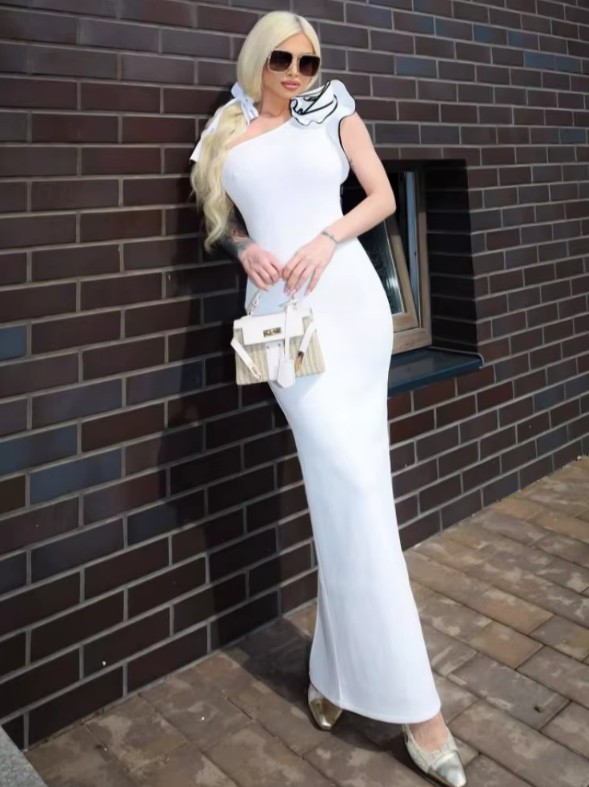 One Shoulder Pencil Dress for the Registry Office in White Long