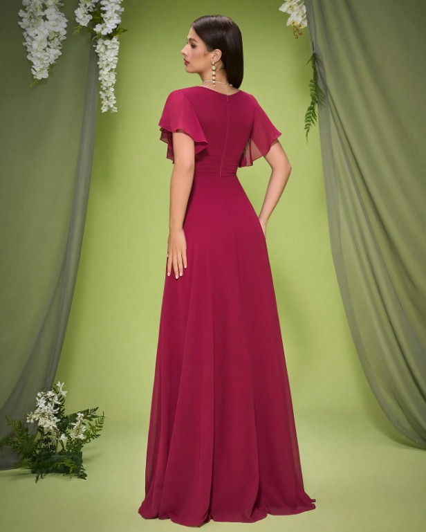 A-line empire dress as a wedding guest with sleeves in red