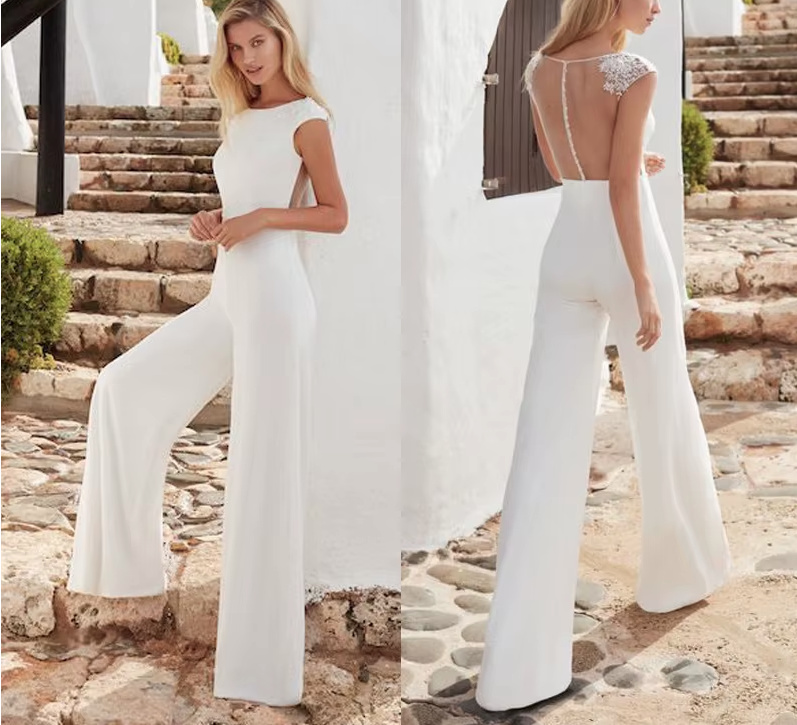 Clean Chick Bridal Jumpsuit One-Piece Sleeveless Long in White