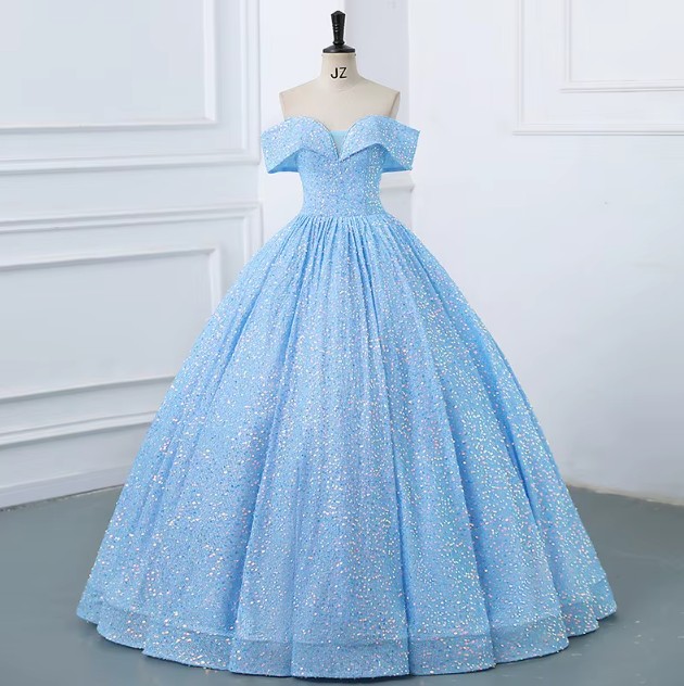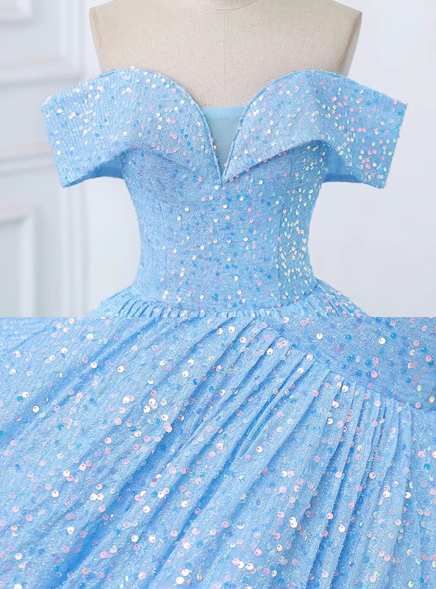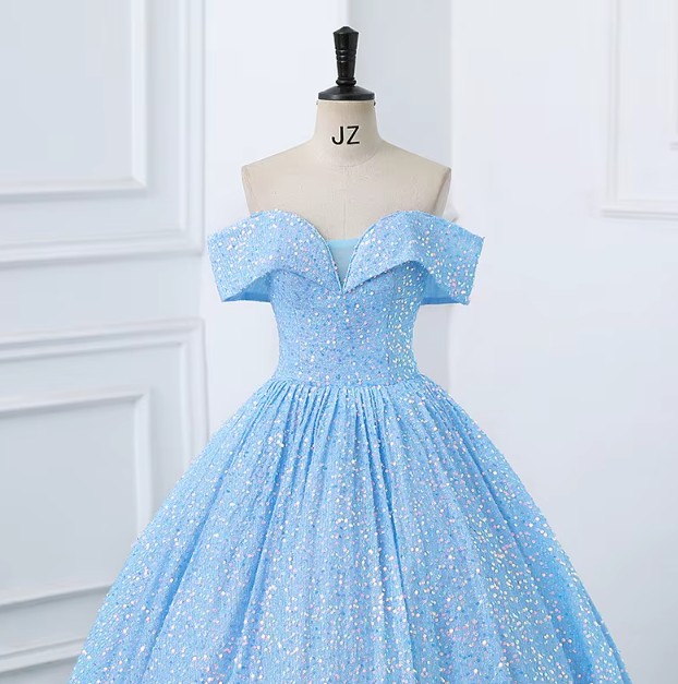 Schulterfreies Glitzer Ballkleid Elis in Hellblau