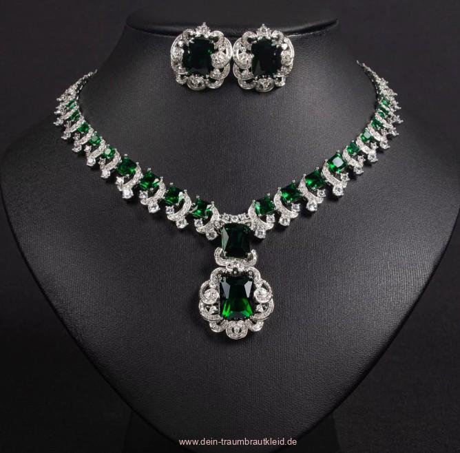 Zikron Brautschmuck Set Ilse Halskette mit Ohrringe Silber Grün