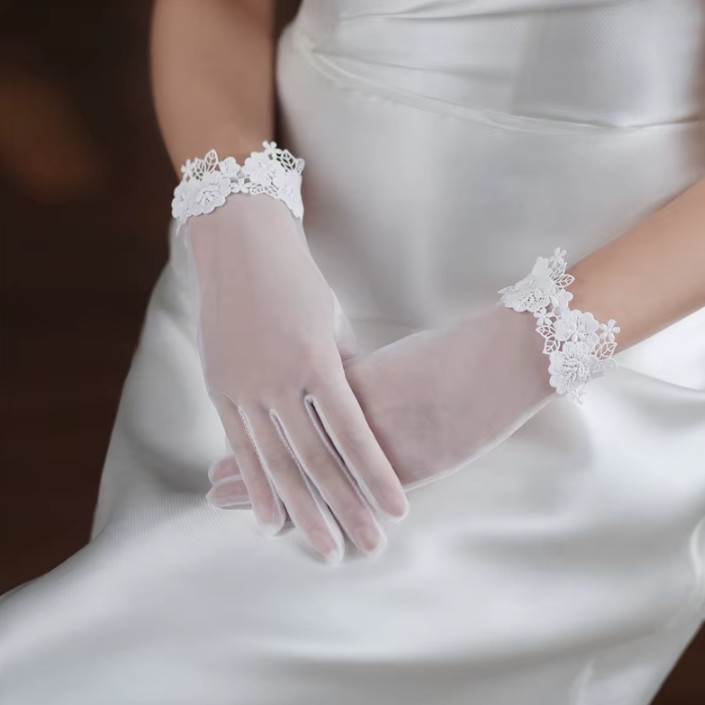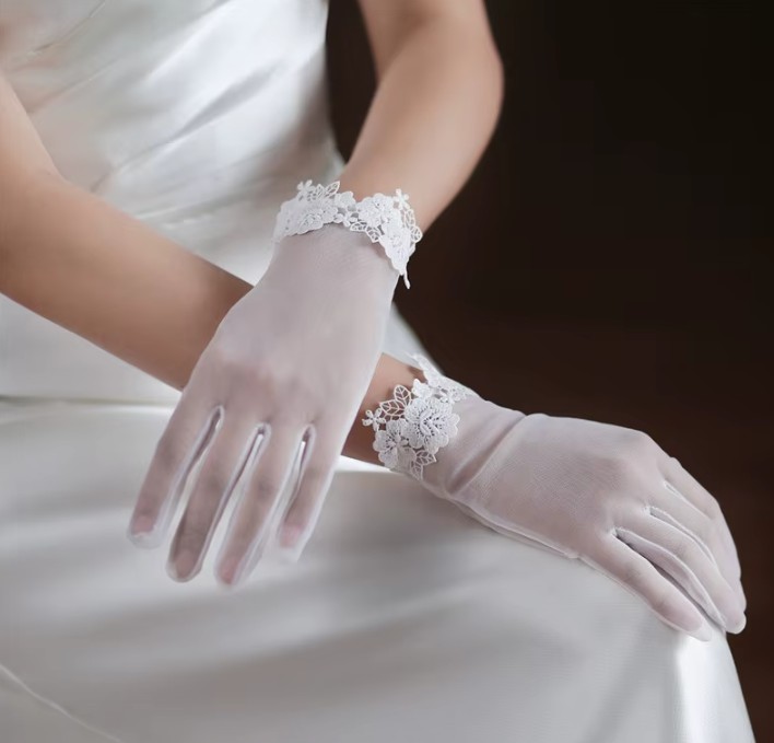 Brauthandschuhe Immanuela mit Spitze in Weiß
