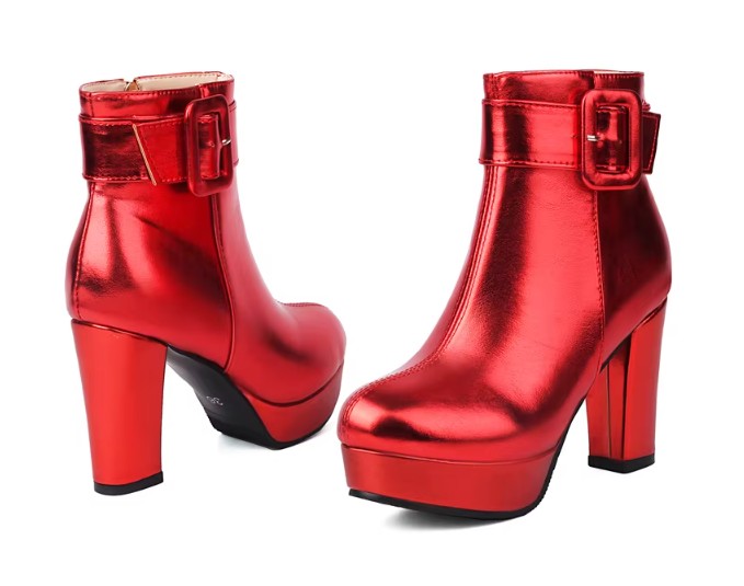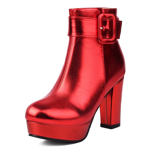 Metallic PU Leder Damen Stiefeletten in Rot bis Gr 43