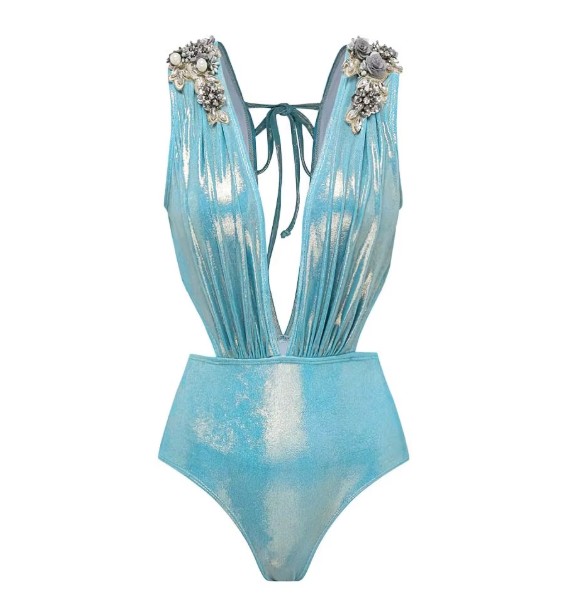 Sexy Glitzer Vintage Style Badeanzug in Hellblau mit Rock im Set
