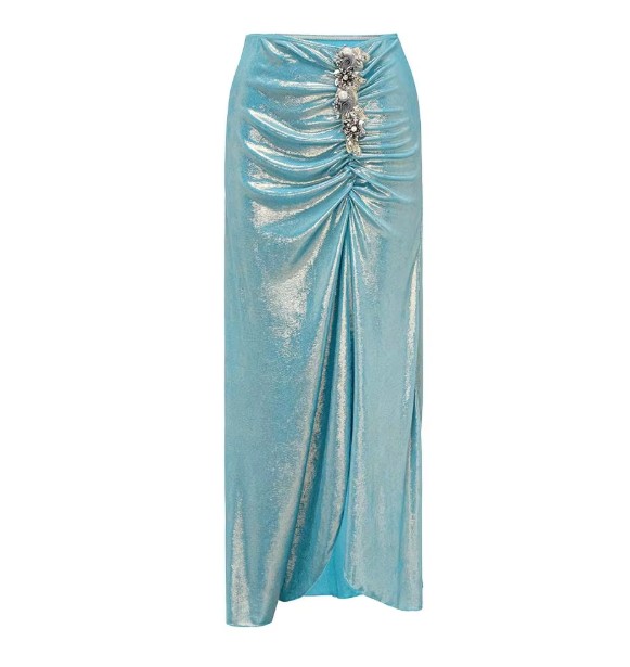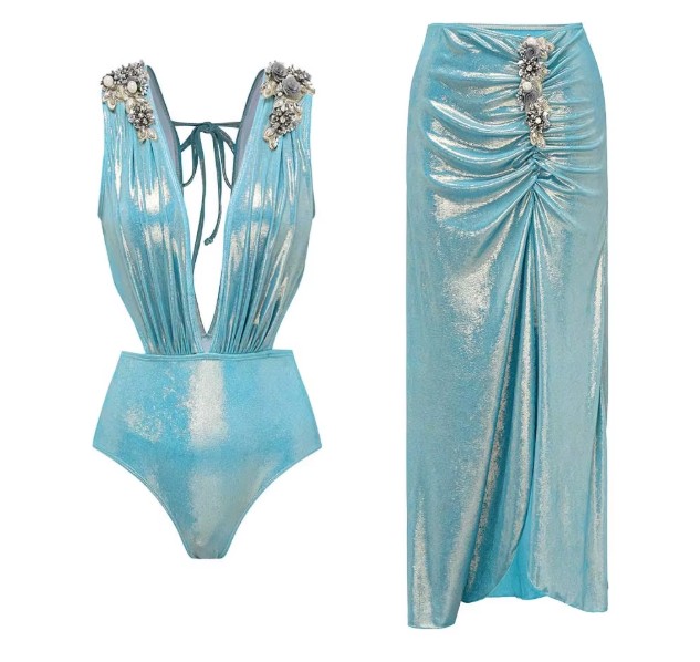 Sexy glitter vintage style swimsuit in light blue with skirt in set