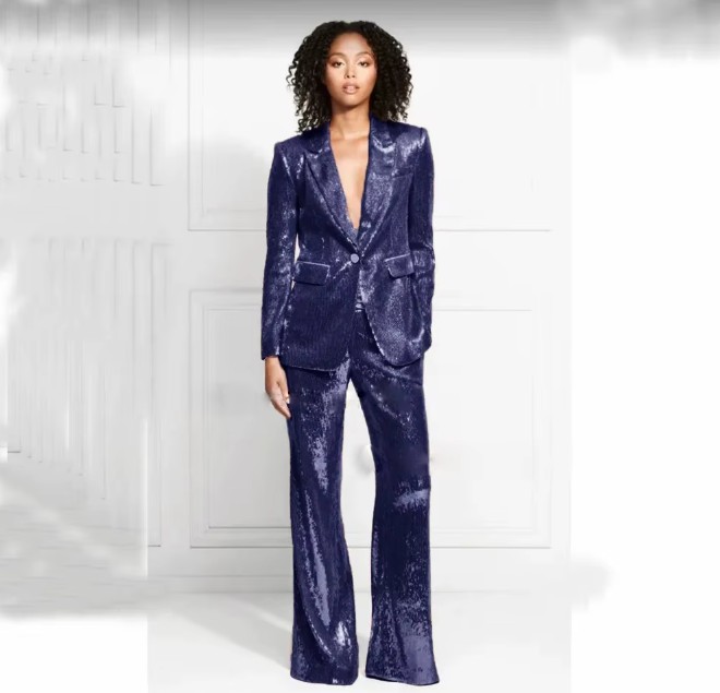 Schickes Pailletten Glitzer Hosenanzug Evina in Dunkelblau