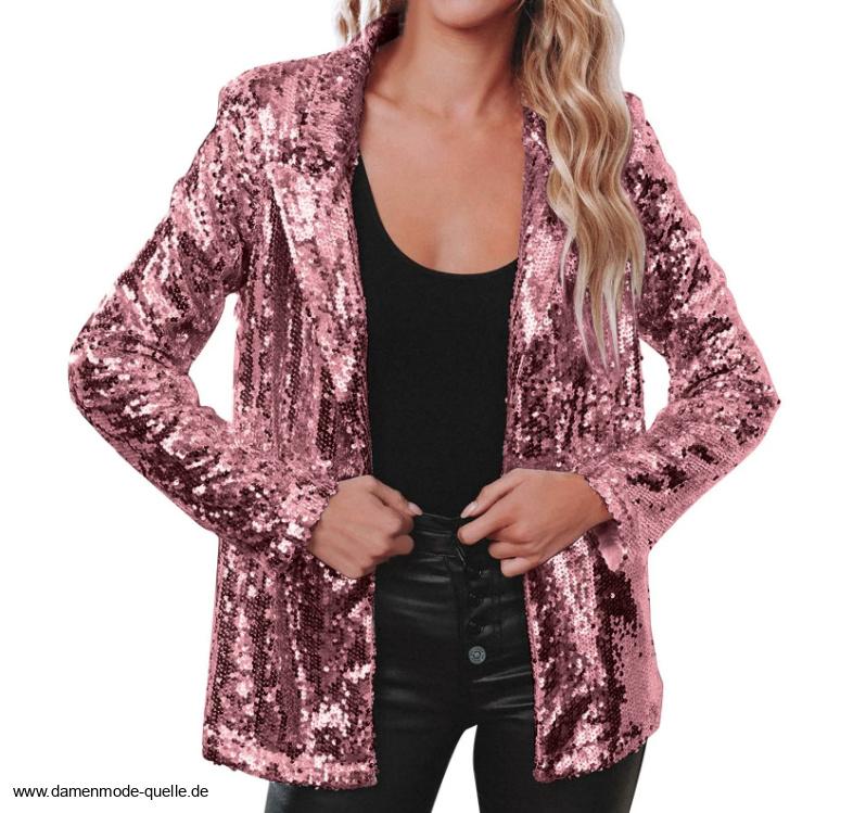 Shinny Pailletten Glitzer Blazer Elegant und Festlich in Rosa