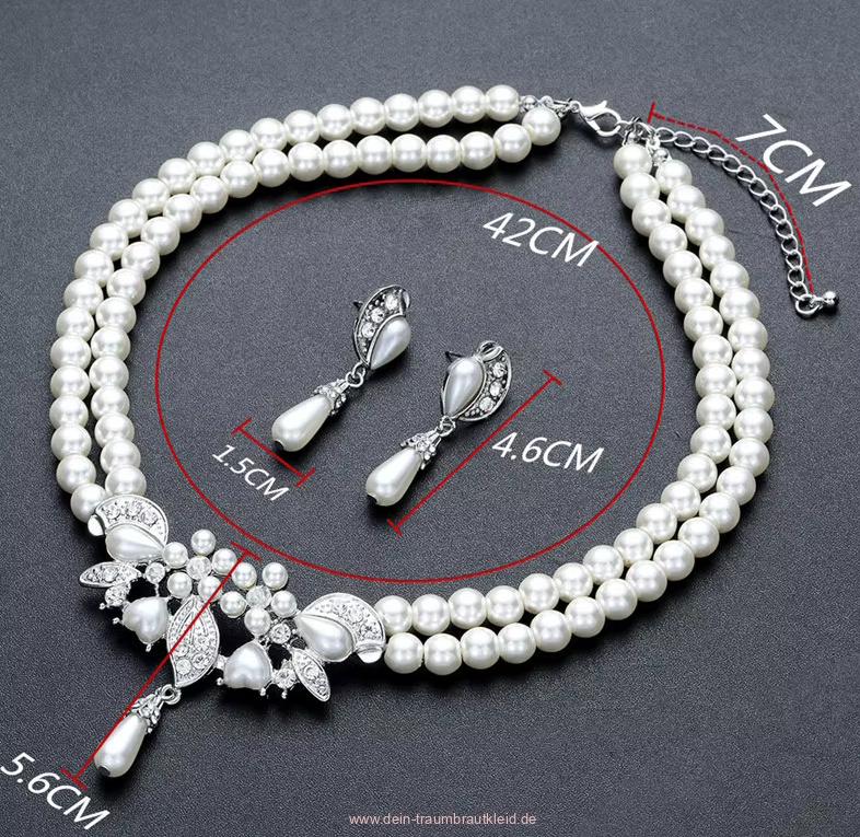 Braut Schmuckset Cassia Ohrringe und Halskette mit Perlen Klassisch