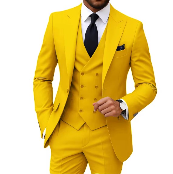 Elegant three-piece men’s suit in yellow