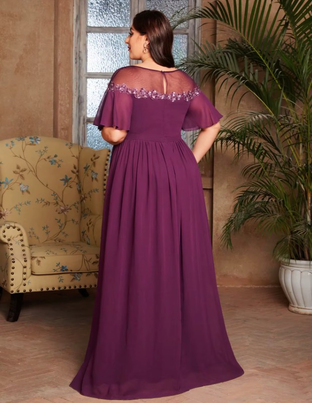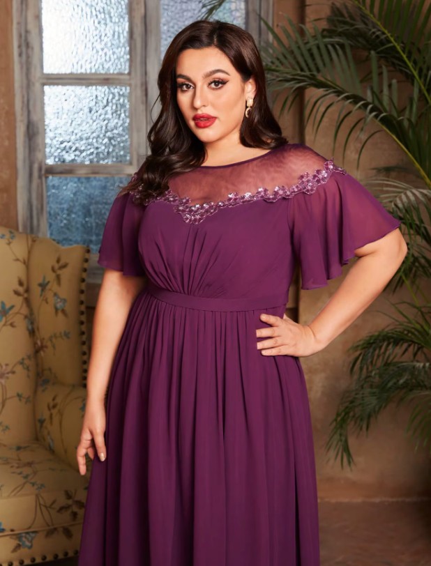 Empire Maxi Chiffon Dress Ilona Elegant for Wedding Guests in Purple