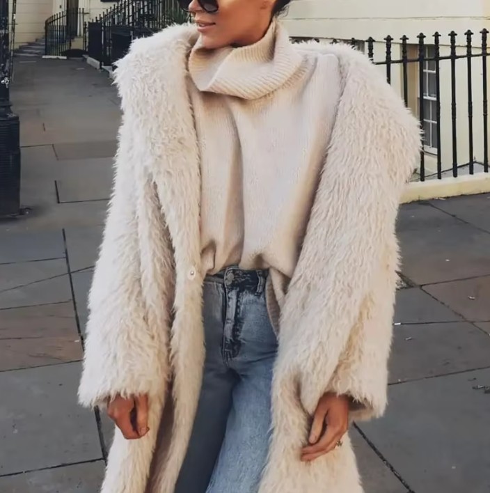 Lange Teddy Plüsch Mantel Elanie in Beige