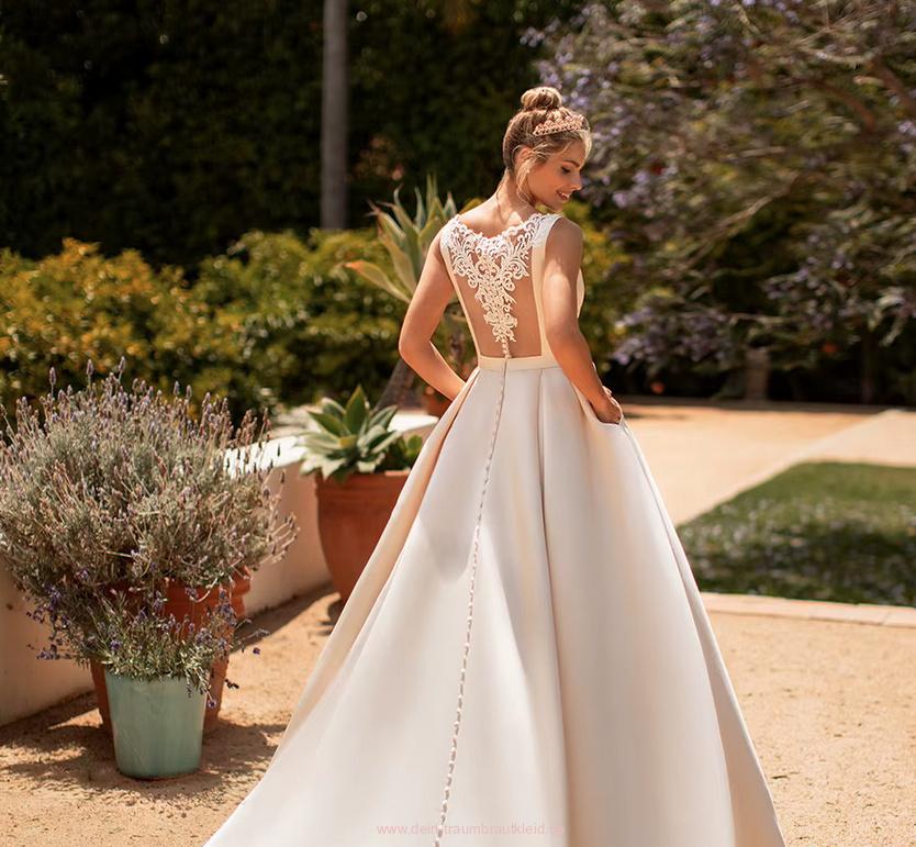 A Linie Satin Brautkleid Cariba Klassisch mit Spitze am Rücken