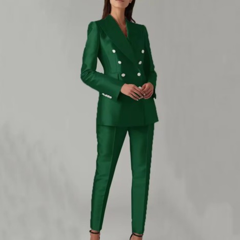 I Line Satin Trouser Suit for Wedding Guests Festive in Green