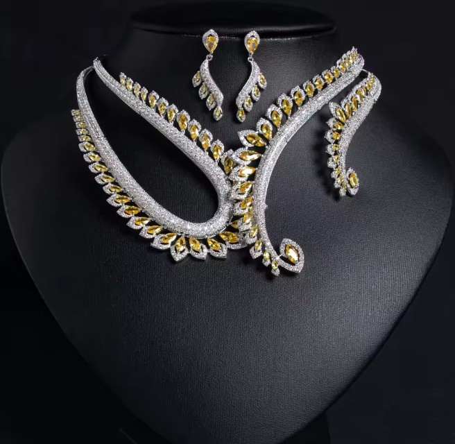 Zikron Bridal Jewelry Set Inga Necklace with Earrings Silver Yellow