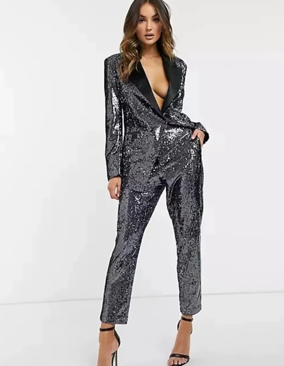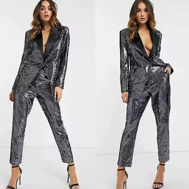 Glitzer Pailletten Hosenanzug für Hochzeitsgäste Festlich in Schwarz