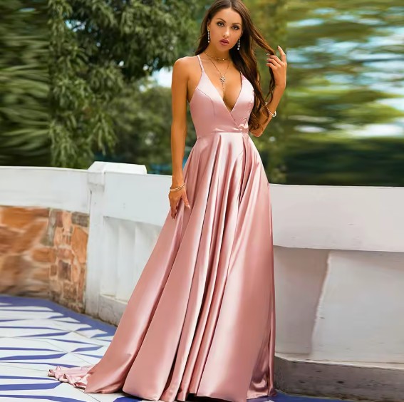 A Linie Satin Kleid Elfriede Elegant für Hochzeitsgäste in Altrosa