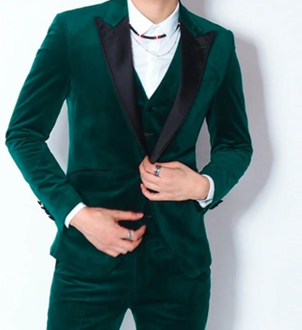 Samt Hochzeitsanzug Bernd frü den Bräutigam in Dunkelgrün Dreiteilig