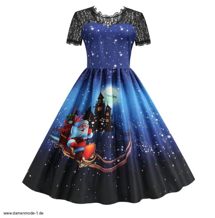 Vintage Style Rockabilly Weihnachtskleid Chalyse Knielang mit Ärmel